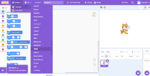 プログラミング言語で書かれた命令の集まりのことをスクリプトと言います。スクリプトを書くには、左のコードメニューからさまざまな色をしたコードブロックをクリックしてドラッグし、画面センターのスクリプトエディターにドロップします。ブロック同士をつなぎ合わせることで、プログラムの長い命令、つまりスクリプトができ上がります。